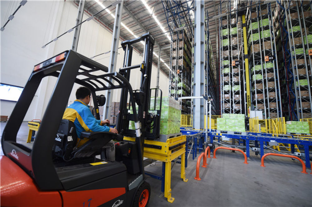 工作人員在南京市雨花經(jīng)濟開發(fā)區(qū)一家智慧物流基地內(nèi)忙碌(2016年11月3日攝)。該物流基地建筑面積達20多萬平方米,可存儲商品2000萬件,日處理包裹181萬件。整個物流基地實現(xiàn)全流程自動作業(yè),從訂單生成到商品出庫,最快可縮短到30分鐘。新華社發(fā)