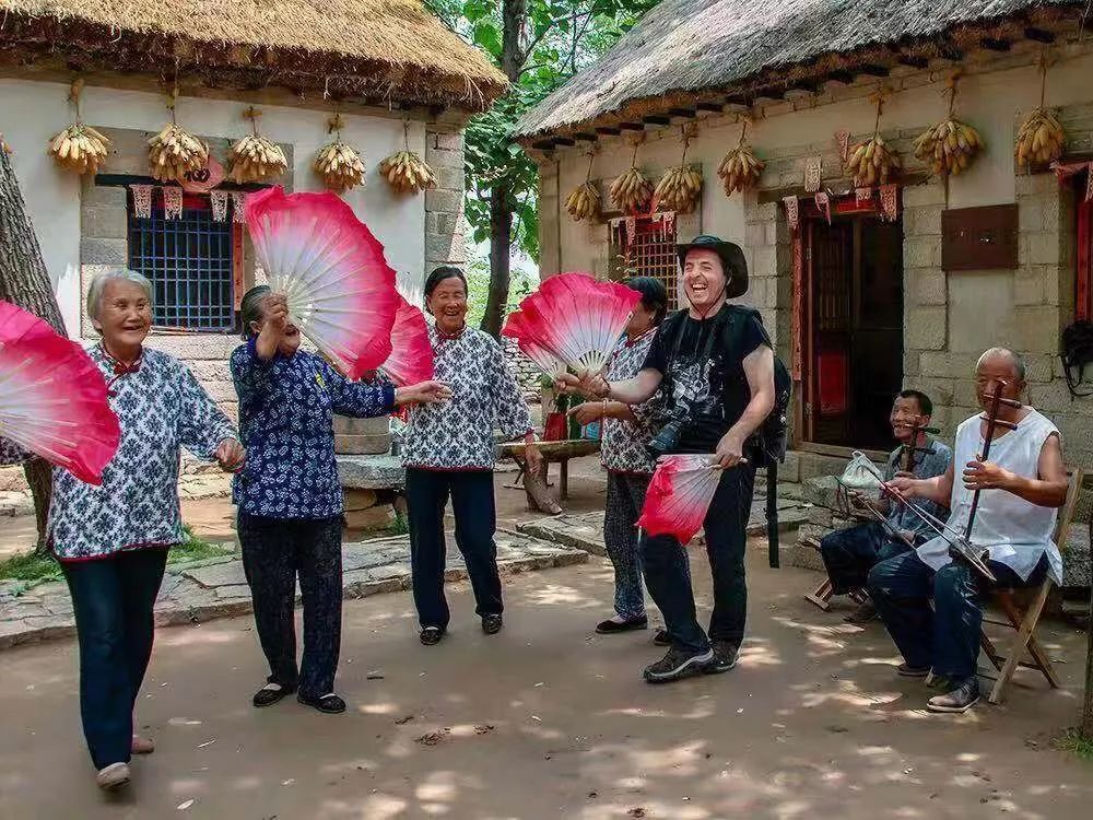 △ 喬治·杜帕斯在濰坊和村民學(xué)跳舞蹈