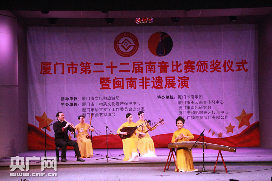 央廣網(wǎng)廈門12月16日消息(記者 謝良建)為慶祝新中國成立70周年、南音列入人類非物質(zhì)文化遺產(chǎn)代表作名錄十周年,由廈門市非物質(zhì)文化遺產(chǎn)保護中心、廈門市語言文字工作委員會辦公室、廈門市曲藝家協(xié)會聯(lián)合主辦的“廈門市第二十二屆南音比賽頒獎儀式暨閩南非遺展演”昨日(15日)在廈門南音閣舉行。