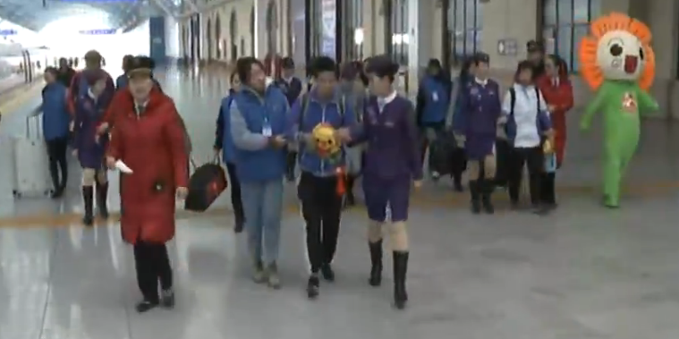 央視網(wǎng)消息:春運來臨,不少大中院校的學生已經(jīng)開始離;丶,10日,山東青島盲校的10名學生,通過鐵路部門為他們開通的綠色通道,踏上返鄉(xiāng)的列車。