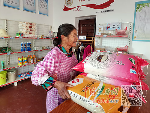 在義坪村“脫貧動力加油站”,貧困戶憑積分兌換大米等物品。本報記者 鐘珊珊攝