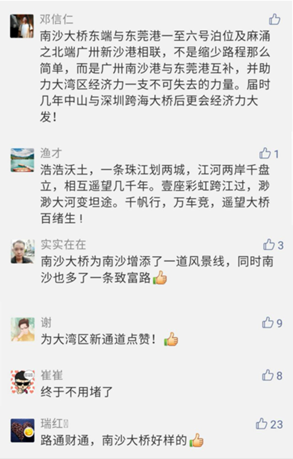 “我叫何家豪,老家在佛山,目前在深圳一家機(jī)器人公司工作。以前春節(jié)只能從虎門大橋回家,‘逢走必堵’。若想避開擁堵,就需要起個(gè)大早或者深夜出發(fā),F(xiàn)在南沙大橋開通后,說走就走,兩個(gè)小時(shí)就能到家。近幾年,競(jìng)技格斗機(jī)器人行業(yè)愈加繁榮,我們團(tuán)隊(duì)每次外出參加比賽,都會(huì)從南沙大橋經(jīng)過,有種南沙大橋送我‘出征’的感覺,這種感覺很奇妙!”打卡人何家豪說。