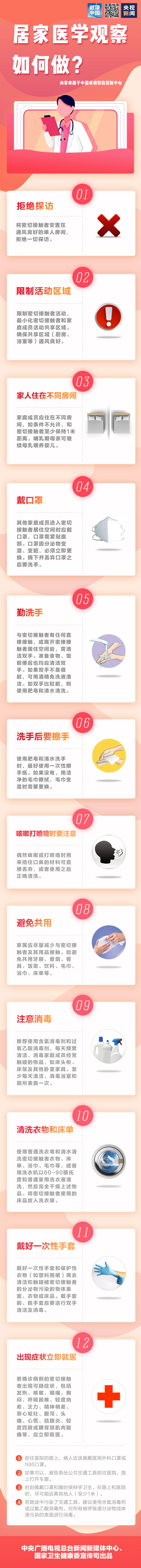 馮錄召:有武漢旅行史或居住史的人,要盡快登記,減少外出,連續(xù)14天進行自我監(jiān)測,每天測量體溫兩次。盡量單獨居住在通風良好的單人房間,減少與家人接觸。