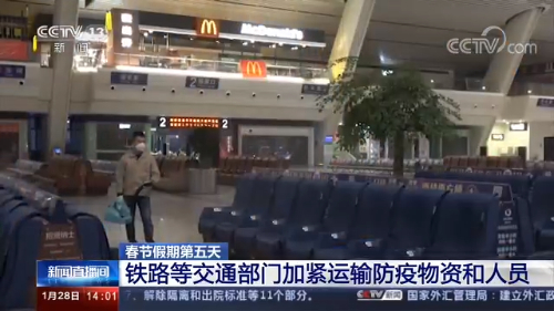 央視網(wǎng)消息:今天(28日)是春節(jié)假期第五天,全國交通客流繼續(xù)下降,鐵路等交通部門開辟綠色通道,加緊運輸防疫物資和人員。