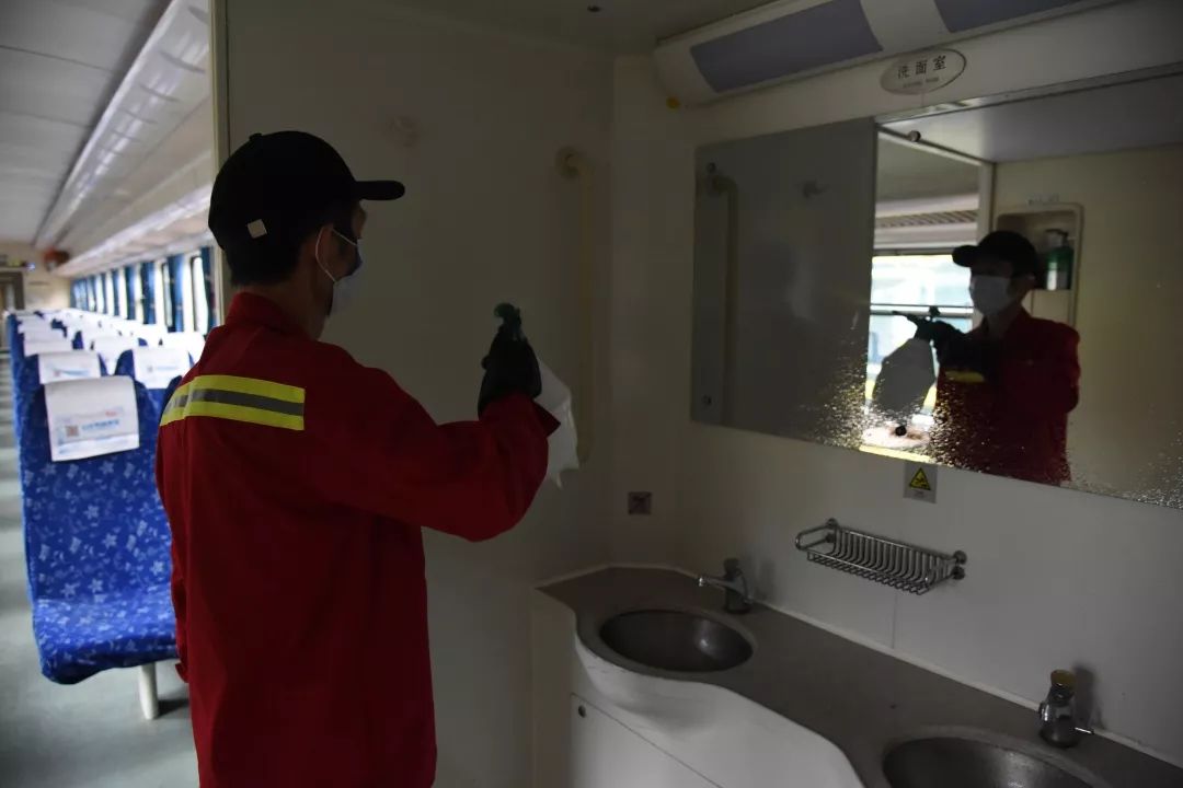 自疫情蔓延以來,廣州局集團公司要求每趟旅客列車上線運行前,必須進行全面消毒和保潔。按照這一要求,廣州客運段加強了列車消毒保潔力度。