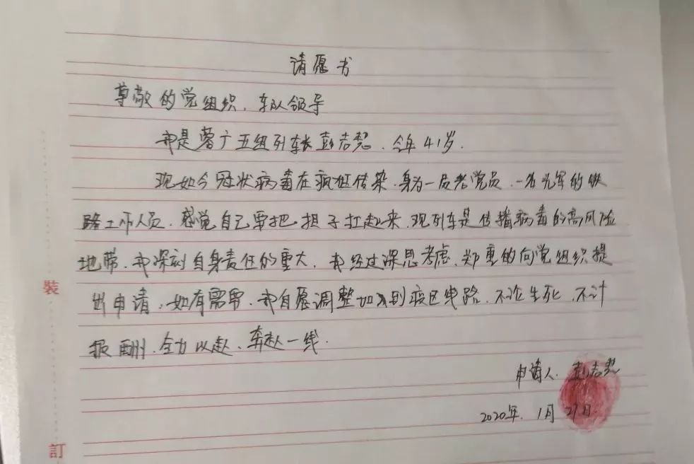 1月27日,G2991次列車長彭志慧將一封請愿書交到了貴陽客運段動車三隊黨總支。