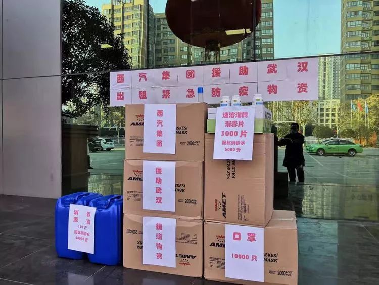 疫情無情,西汽有愛。西汽集團目前還承擔著西安市出租汽車行業(yè)防疫防控前沿重要工作,在抗疫物資短缺的情況下,發(fā)動全體員工,多方籌集口罩10000只,98%消毒原液200斤(1:200配比消毒水4萬瓶)、消毒泡騰片3000片(配比消毒水6000升),為堅定武漢抗疫信心,以實際行動支援防疫前沿的武漢出租行業(yè)兄弟單位。