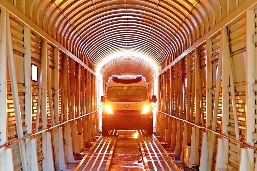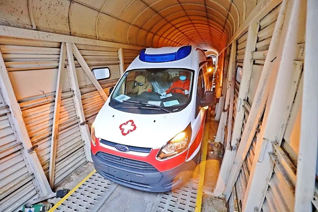 本次運(yùn)輸救護(hù)車(chē)使用中鐵特貨JSQ5型車(chē),是專(zhuān)門(mén)為運(yùn)送大中型車(chē)輛定制的,全程無(wú)需押運(yùn),避免了司機(jī)地跑、交付、往返環(huán)節(jié)可能引發(fā)的交叉感染風(fēng)險(xiǎn),大大提升了運(yùn)輸過(guò)程中器材和人員的安全性。