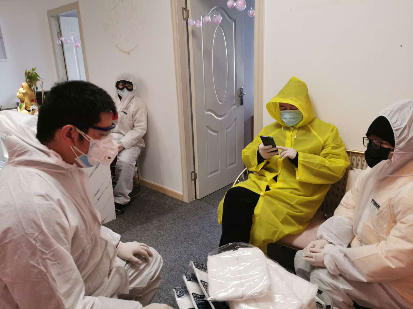 中午有別人贈送給我們的面包、牛奶、方便面,我們躲在一個房間湊合著弄一下,要不就不吃,能堅持就不吃。一天吃不了什么東西,而且又戴著口罩、穿著防護服。最后累得不想說話,坐著,發(fā)個呆,休息一會兒,然后再回家。