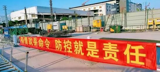 珠三角水資源配置工程建設(shè)工地上,防疫宣傳標(biāo)語格外顯眼。