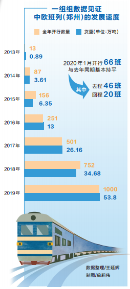 13班、87班、156班、251班、501班、752班、1000班,自2013年7月18日開(kāi)行以來(lái),中歐班列(鄭州)一年一個(gè)飛躍,助推河南進(jìn)一步擴(kuò)大對(duì)外開(kāi)放。