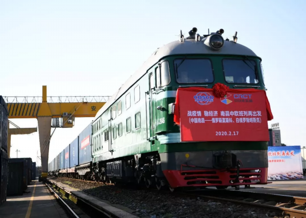 2月17日9時58分,滿載著41車40英尺集裝箱的中歐班列由南昌(向塘)國際陸港橫崗站發(fā)出,駛向俄羅斯莫斯科和白俄羅斯明斯克。