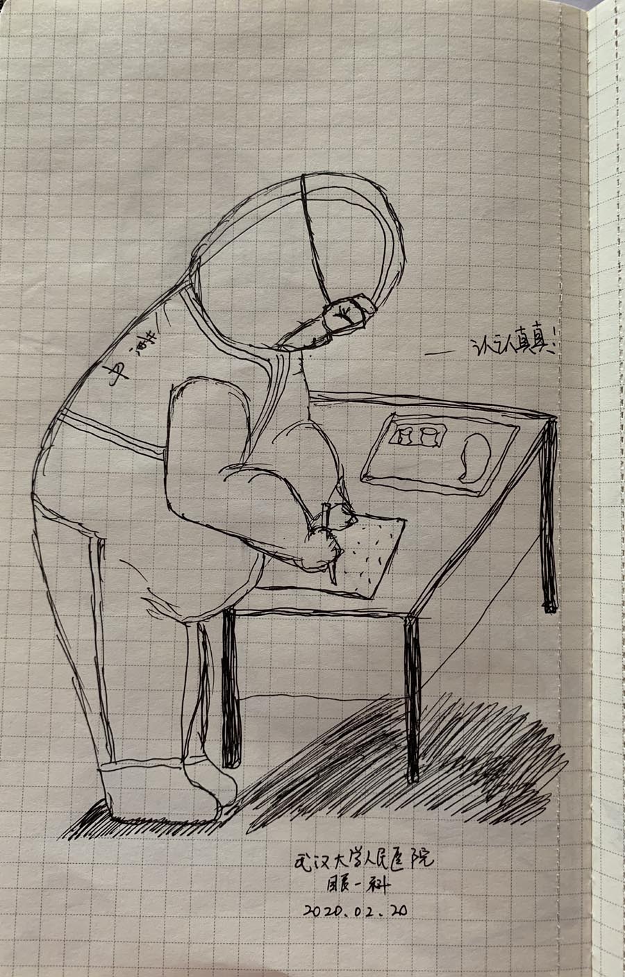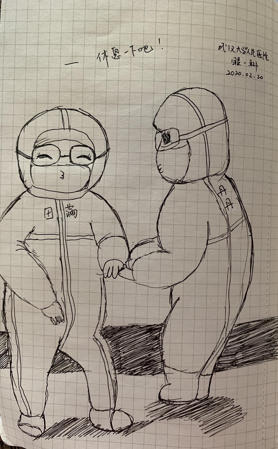 護(hù)士手繪圖畫 記錄抗疫一線工作瞬間,2月20日,是武漢大學(xué)人民醫(yī)院眼一科護(hù)士楊陽輪班休息的日子;叵虢1個(gè)月在抗疫一線的工作,她拿起畫筆,為其所在科室中奮戰(zhàn)在抗疫一線的護(hù)士每人畫了一幅畫像,記錄下他們的工作瞬間。