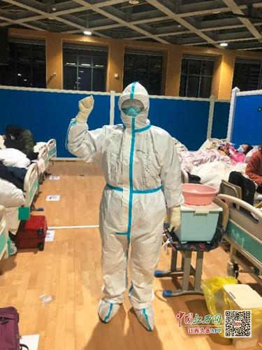 2月6日,楊輝利在日記中寫(xiě)道,“里面的病人都是輕癥,但是他們普遍焦慮,我只有不斷地安慰不斷的解釋?zhuān)?qǐng)他們耐心等候,(我們會(huì))陪著他們!睏钶x利說(shuō),“穿著厚厚的防護(hù)服六個(gè)小時(shí),一人管十個(gè)病人,不吃不喝,真的好難受。呼吸都有點(diǎn)困難,還要不停解釋?zhuān)荒茏呗。到后面腰真的很痛?因?yàn)?只能直著不能彎腰。沒(méi)體會(huì)過(guò)的人真的沒(méi)法想象。但是我不能放棄,一定要堅(jiān)持,因?yàn)檫@里面的病人他們很需要我們幫助。”
