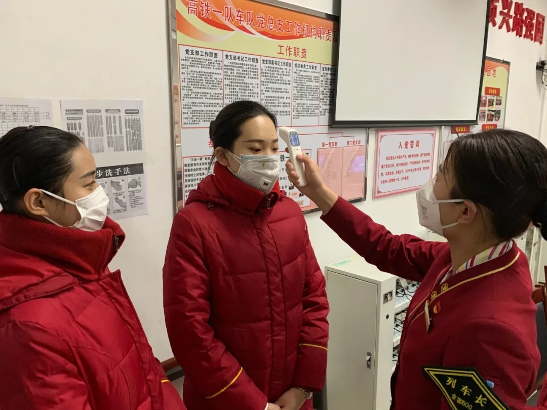 孔維爽:2月份以來,我們車隊(duì)為了應(yīng)對(duì)新冠肺炎疫情,采取了“輪乘制”,每個(gè)班組工作2天然后在家休息(隔離)14天。常規(guī)班組由一名列車長(zhǎng)兩名乘務(wù)員組成,值乘的全體職工每天上報(bào)四次體溫,休班職工每天上報(bào)兩次體溫。身體狀況無異常,才能繼續(xù)值乘,確保無一例感染者上車。