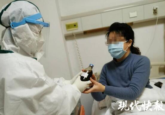 △湖北省中醫(yī)院肺五科的醫(yī)護人員為患者送醫(yī)院自制中藥湯劑