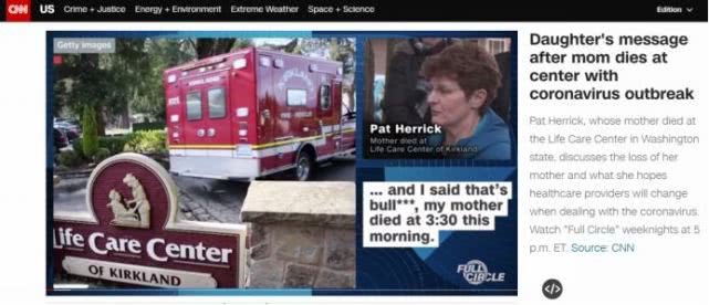 華盛頓州“柯克蘭市生命護理中心”(Life Care Center of Kirkland)成為令人擔(dān)憂的美國疫情中心區(qū)域。多家美媒近日講述了這樣一件令人揪心的事:名為帕特·赫里克的女子在接到柯克蘭市生命護理中心稱其母親去世的消息后不久,仍然接到電話宣稱其母親“體溫正常,一切都好”。