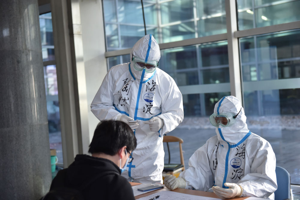 3月14日,北京市海淀區(qū)集散點(diǎn)工作人員在詢問入境人員信息。近日,北京市啟用新國展作為首都機(jī)場(chǎng)全部國際及港澳臺(tái)地區(qū)入境旅客的轉(zhuǎn)運(yùn)集散地,此集散地用于經(jīng)機(jī)場(chǎng)檢疫后未出現(xiàn)發(fā)熱、咳嗽等癥狀的低風(fēng)險(xiǎn)人群臨時(shí)集散。新華社發(fā)(陳鐘昊攝)