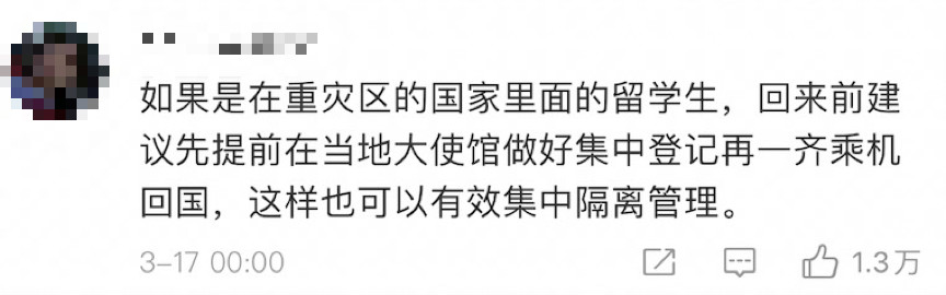 有的網友則認為,回國途中會增加染病風險,也容易增加無癥狀患者帶來輸入性交叉感染的風險!
