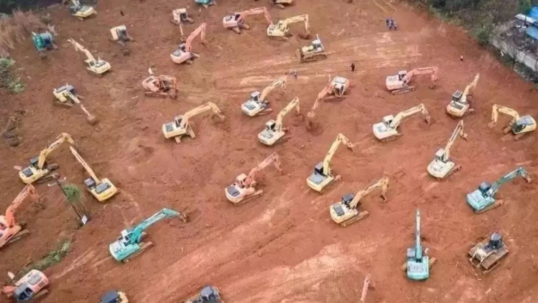 1月24日除夕 第1天 上百臺挖機抵達(dá)火神山醫(yī)院現(xiàn)場,開始土地平整