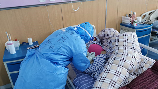 我所在的湖北婦幼保健院光谷院區(qū)感染二科是重癥科室,病人基本都是生活不能自理的老奶奶、老爺爺。除了日常的護(hù)理工作---輸液、動(dòng)靜脈采血、插胃管、導(dǎo)尿管、檢測(cè)呼吸機(jī)、搶救病人、病房的洗消、垃圾的處理外,還要喂飯、喂藥,換尿不濕。因?yàn)檎Z言不通(老人家說武漢方言),還要連說帶比劃,半天才能搞明白爺爺奶奶們想要表達(dá)的意思。一個(gè)班下來,渾身都是汗快要累癱了,但是耳邊老爺爺老奶奶的話語,“孩子,謝謝你”,那時(shí)候我的心里倍感欣慰,感覺渾身都是勁。