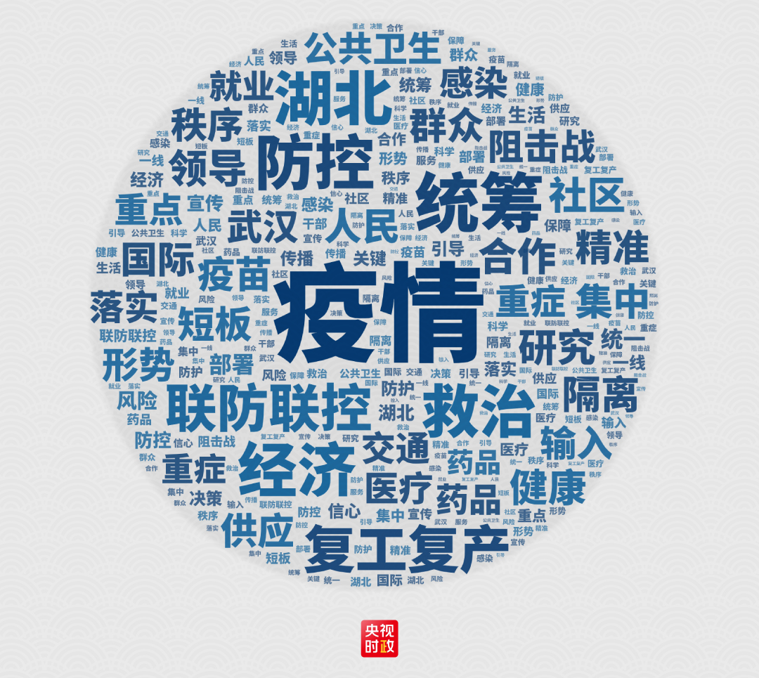 從7次會議的關(guān)鍵詞云圖,可以更加清楚地看到這場戰(zhàn)“疫”的主戰(zhàn)場、主攻方向在哪里。從迎擊、鏖戰(zhàn)到?jīng)Q勝,中國正在為奪取抗擊疫情最終全面勝利而奮斗。