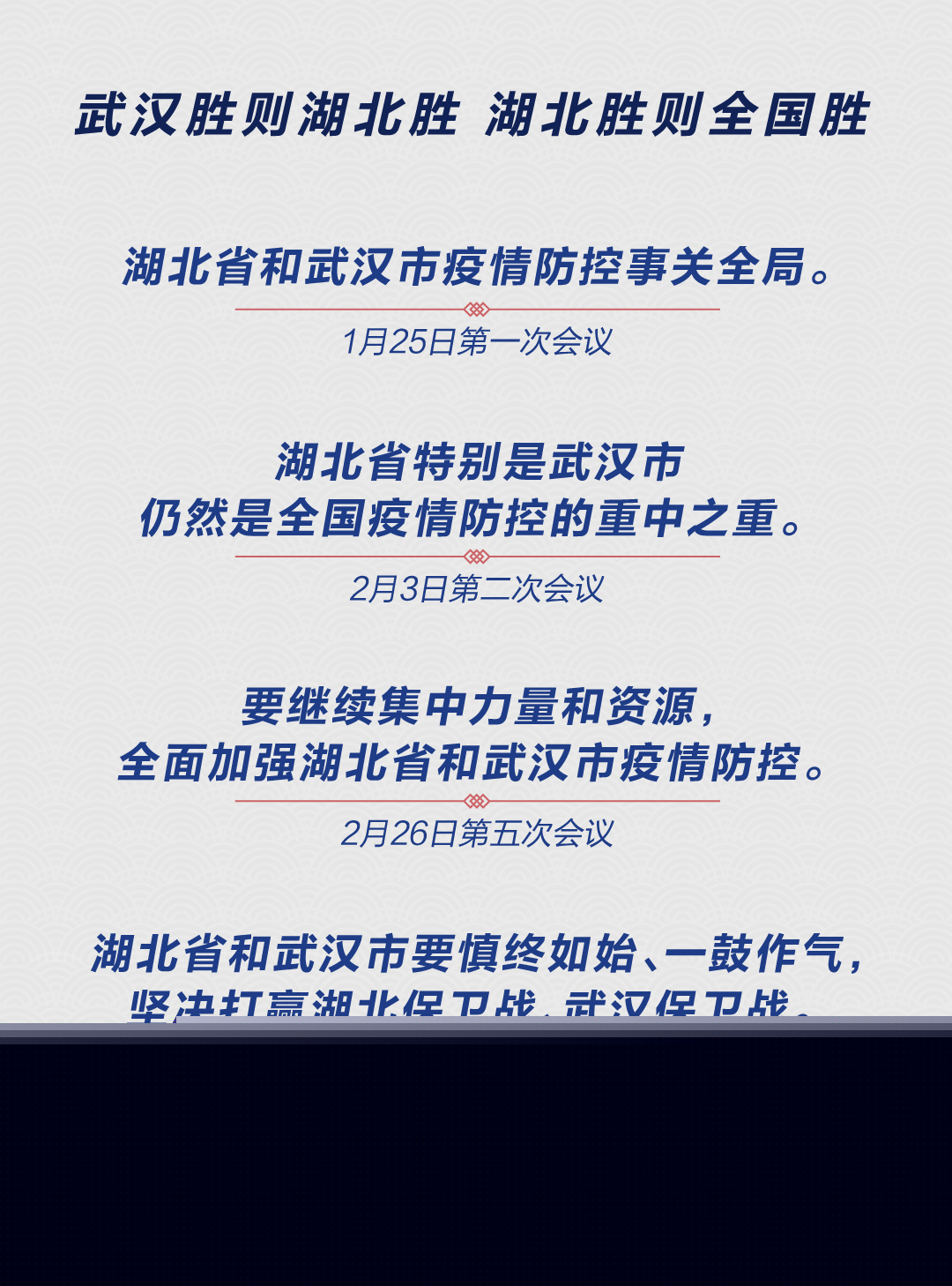 “加強(qiáng)疫情防控這根弦不能松,經(jīng)濟(jì)社會發(fā)展各項(xiàng)工作要抓緊!薄凹訌(qiáng)疫情防控必須慎終如始。”“毫不放松抓緊抓實(shí)抓細(xì)各項(xiàng)防控工作,決不能讓來之不易的疫情防控持續(xù)向好形勢發(fā)生逆轉(zhuǎn)!痹谇昂7次會議上,習(xí)近平因應(yīng)施策,把武漢和湖北作為全國主戰(zhàn)場,對其他省份加強(qiáng)分類指導(dǎo),始終主導(dǎo)著戰(zhàn)“疫”的方向。