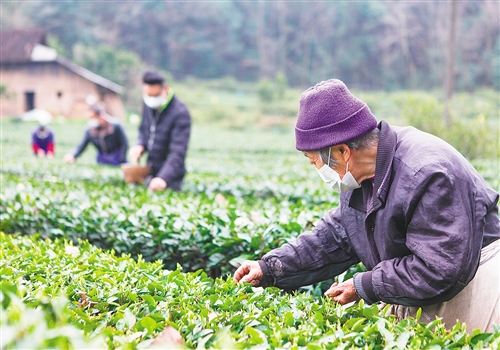 “我的茶園在清江邊,今年的長勢好得很!贝迕裼乳_華說,最近春茶價格不錯,村民早就盼著開園了。在長陽廩君茶葉專業(yè)合作社,負(fù)責(zé)人李作森幾天前就在忙碌!懊磕牾r葉采摘前,都要先去茶園對鮮葉取樣,檢測達(dá)標(biāo)后,才能收來加工!崩钭魃f,今年與以往不同的是,在取樣的同時還得挨家挨戶給社員們說明特殊時期的“規(guī)矩”,比如以家庭為單位摘茶,戴好口罩下田,不請工、不串戶、不聚集。為加強(qiáng)防控,茶廠備足了口罩等防疫物資,廠內(nèi)廠外的防疫消毒嚴(yán)格按規(guī)范做到不留死角。