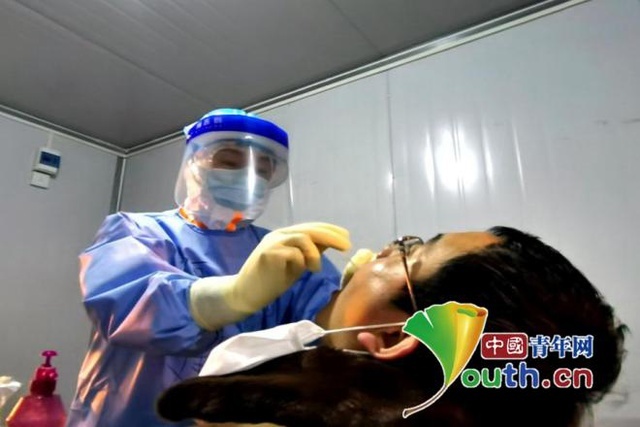 雷樂鶯給患者做咽拭子采集,圖片來自:中國青年網(wǎng)