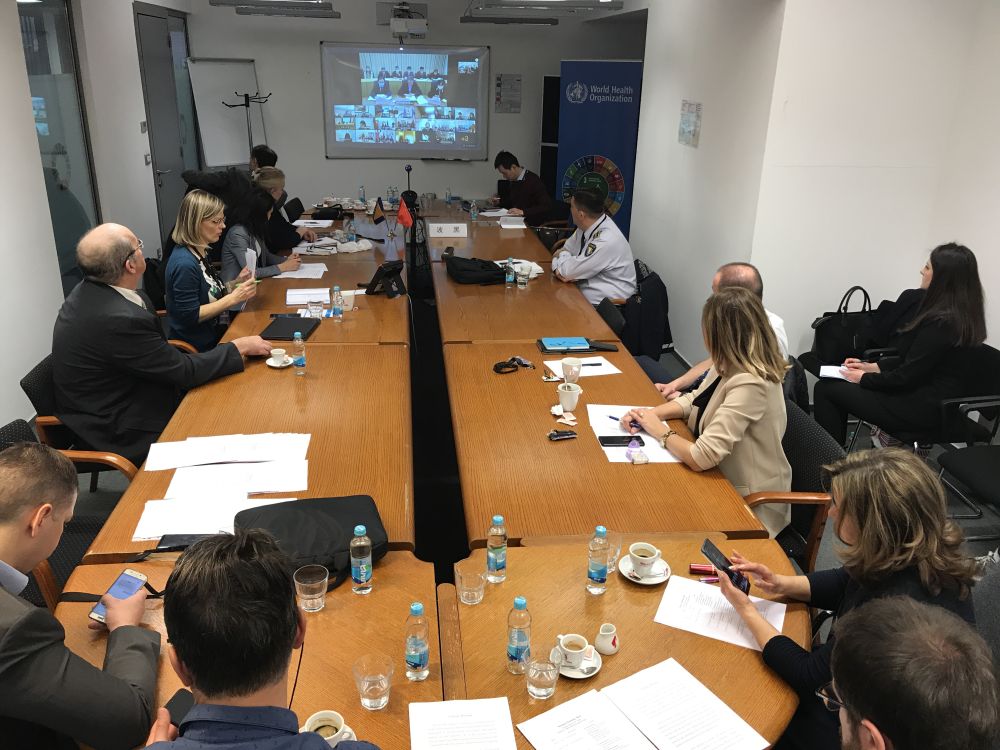 3月13日,在波黑首都薩拉熱窩,波黑衛(wèi)生專家在聯(lián)合國駐波黑辦公大樓參加中國同中東歐17國新冠肺炎疫情防控專家視頻會議。(新華社記者張修智攝)