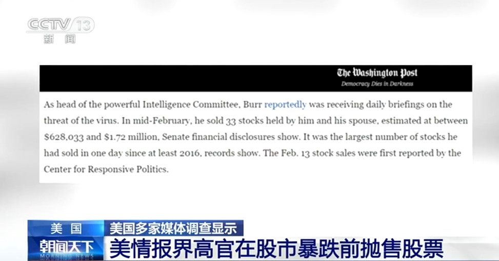 第三個(gè)疑問(wèn)是:為什么2月中旬美國(guó)政府對(duì)本國(guó)新冠肺炎疫情輕描淡寫,而參議院情報(bào)委員會(huì)的多位官員卻在那時(shí)拋售價(jià)值上百萬(wàn)的股票?難道政客們竟然一邊利用內(nèi)幕交易售賣股票,一邊對(duì)公眾隱瞞疫情?難道他們面對(duì)疫情,優(yōu)先考慮的是資本而不是生命?