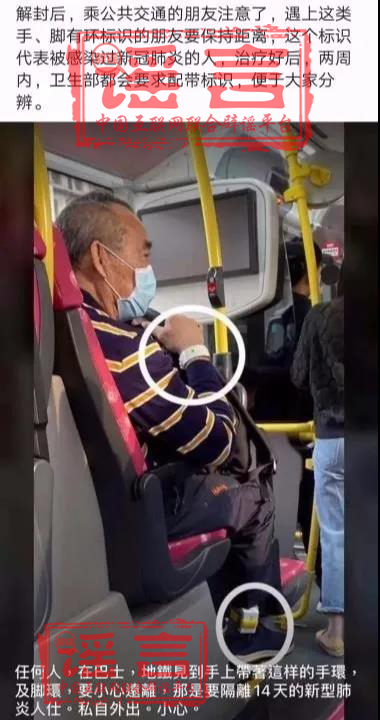 近日,網(wǎng)絡(luò)熱傳一張佩戴著手環(huán)的老人乘坐公交車的圖片。配文指出,這是國家讓新冠肺炎治愈患者統(tǒng)一佩戴的標(biāo)識(shí)。