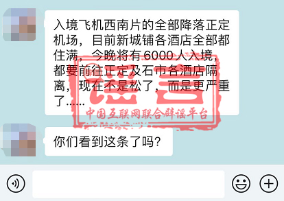 25日,在石家莊微信群、朋友圈流傳著“……今晚將有6000人入境,都要前往正定及石市各酒店隔離,現(xiàn)在不是松了,而是更嚴(yán)重了……”的消息。