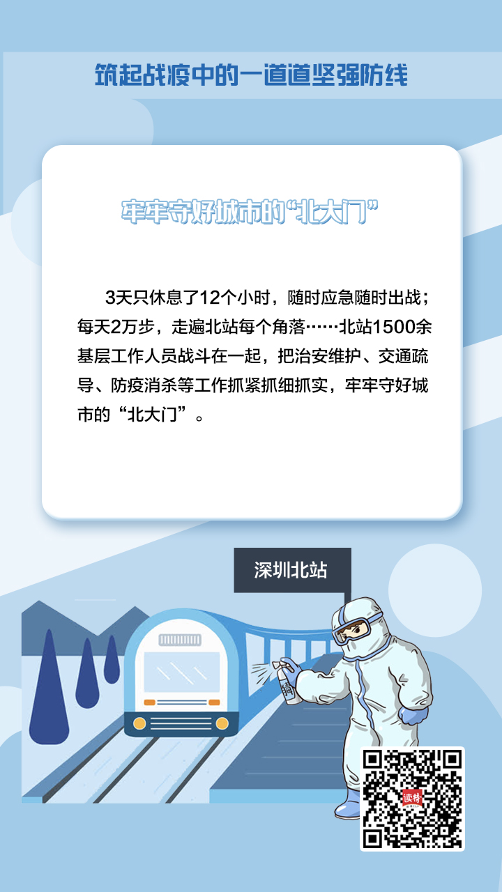 牢記習(xí)近平總書記的重要指示,深圳在新冠肺炎疫情防控的人民戰(zhàn)爭(zhēng)、總體戰(zhàn)阻擊戰(zhàn)中,鑄造了一支由不同“兵種”、精銳之師組成的守護(hù)者隊(duì)伍,堅(jiān)定地筑起一道堅(jiān)強(qiáng)屏障,守護(hù)好城市“外防輸入、內(nèi)防擴(kuò)散”的門戶。
