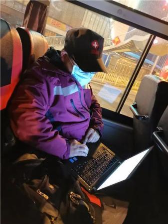 隊(duì)員在回賓館車上查詢應(yīng)急數(shù)據(jù)