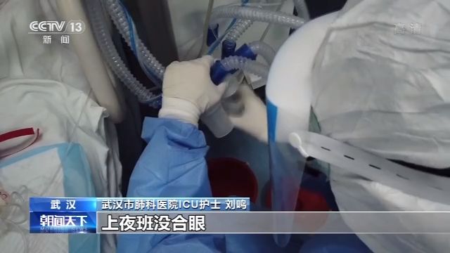 武漢市肺科醫(yī)院ICU護(hù)士 劉鳴:上夜班沒合(過)眼就一直在旁邊守著看著。一個病人連著三四臺機子,有的是心電監(jiān)護(hù)的機子,上面有他的血氧飽和度,血壓、心率這些值,有些病人病情變化挺快的,本來血壓很好,然后突然一下血壓就降下來了,我們要及時去處理。