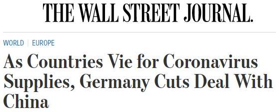 △在各國(guó)爭(zhēng)奪防疫用品之際,德國(guó)與中國(guó)簽訂了決定性協(xié)議(圖片來(lái)源:《華爾街日?qǐng)?bào)》)