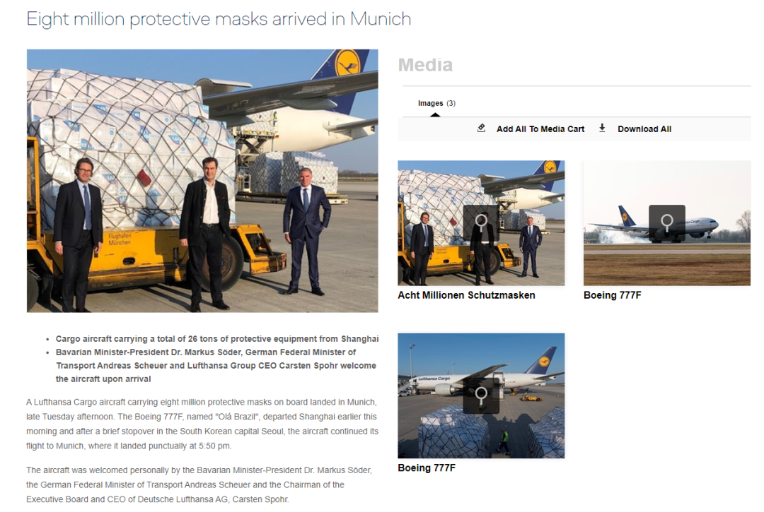 德方為確保中國(guó)防疫物資供應(yīng),架設(shè)中德防疫物資補(bǔ)給“空中橋梁”,德國(guó)衛(wèi)生部也部署德國(guó)漢莎航空,每天將派出一架載重25噸的客機(jī),作為醫(yī)療物資運(yùn)輸專機(jī)飛往上海。