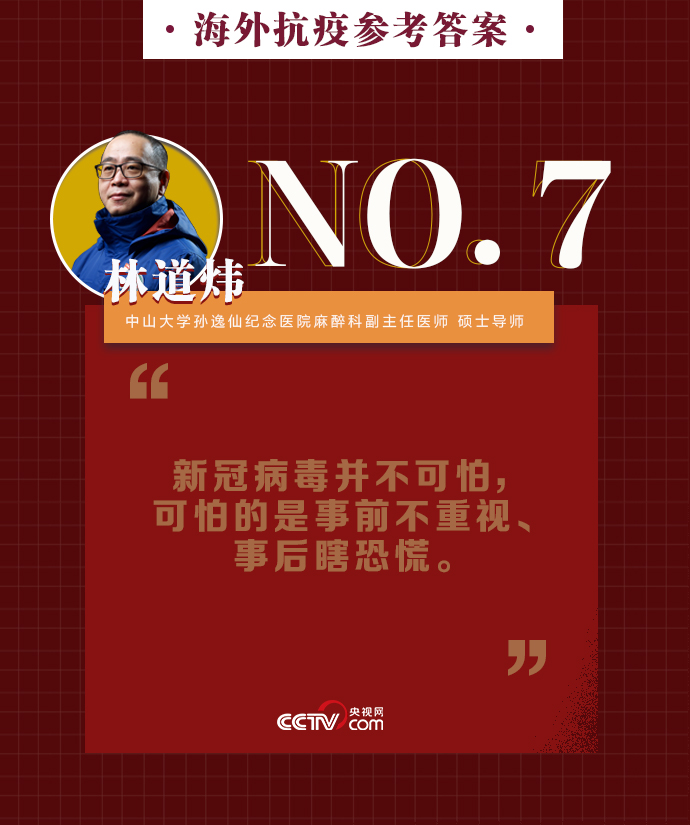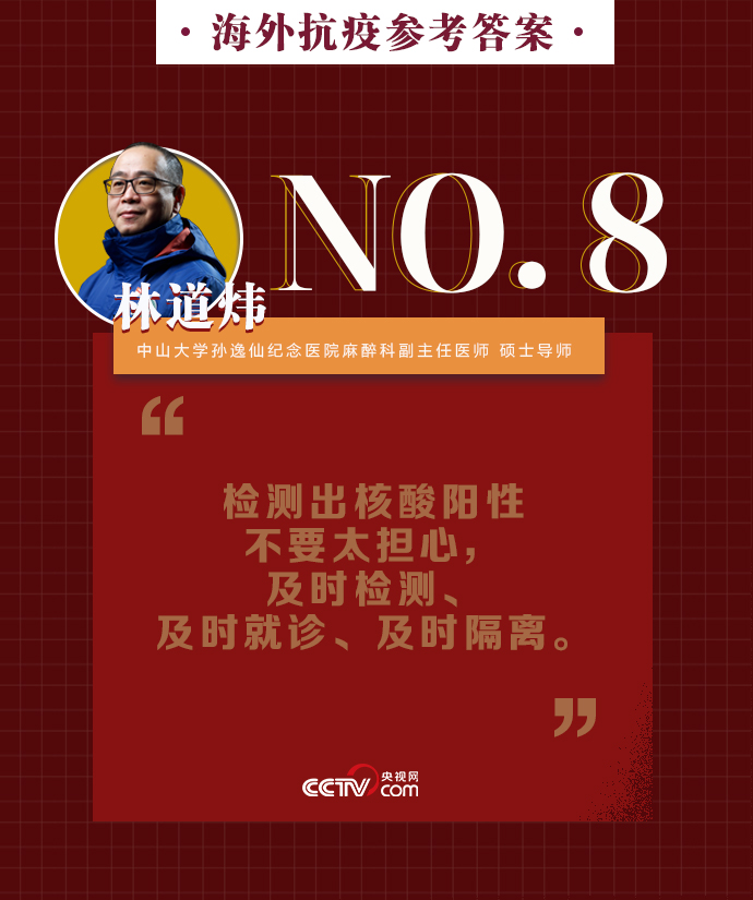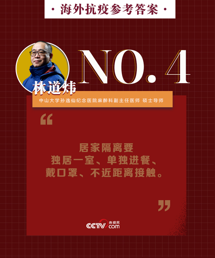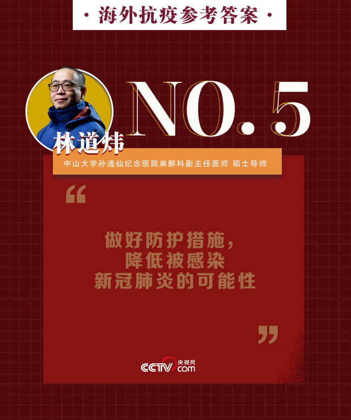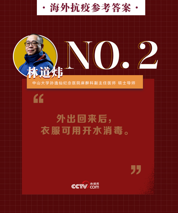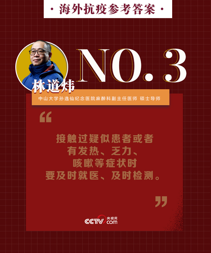 新冠肺炎疫情在全球持續(xù)暴發(fā),海外同胞如何做好基本防護(hù)、保證自身安全?出現(xiàn)焦慮緊張的負(fù)面情緒該如何緩解?中山大學(xué)孫逸仙紀(jì)念醫(yī)院麻醉科副主任醫(yī)師、碩士導(dǎo)師林道煒?biāo)蜕嫌埠斯ヂ裕捍骺谡、注意手衛(wèi)生、減少與人接觸。做好這些,新冠病毒不可怕。