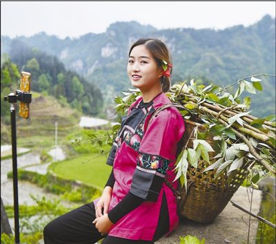 從小在十八洞村長大的施林嬌,對這里很熟悉,苗族的特色文化和日常生活都是她直播的靈感來源,做農(nóng)活、烹飪苗族特色菜、唱苗歌等都是她的直播內(nèi)容。他們希望能通過直播平臺幫助鄉(xiāng)親們的特色產(chǎn)品拓寬銷路。目前,他們在一家直播平臺已經(jīng)有了近5萬“粉絲”!盎氐郊亦l(xiāng)創(chuàng)業(yè),能為家鄉(xiāng)做點小小的貢獻,我就實現(xiàn)了自己的人生價值!笔┝謰烧f。