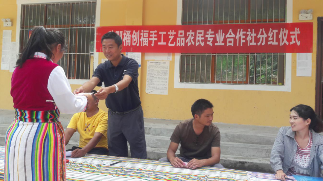 中交集團(tuán)扶貧干部創(chuàng)辦的秋那桶村創(chuàng)福農(nóng)民手工藝品專業(yè)合作社在舉辦分紅儀式