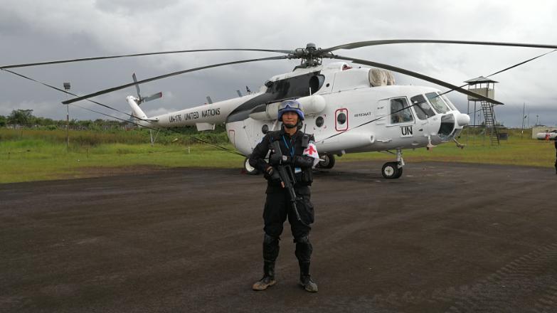 2017年3月,經(jīng)過層層選拔,普興有入選中國第五支赴利比里亞維和警察防暴隊,成為一名戰(zhàn)斗隊員兼衛(wèi)生員,隨隊伍到萬里之外的利比里亞開展為期一年的維和防暴任務。作為防暴隊的一員,普興有始終堅守在自己的崗位,越是艱難險阻,越是沖鋒在前。
