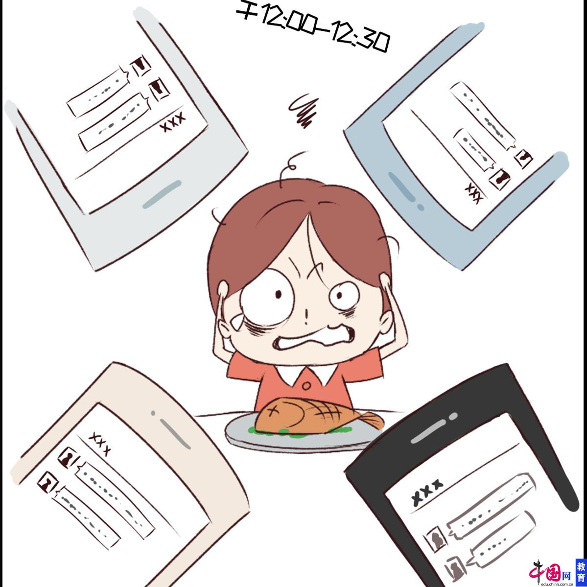 終于熬到午餐,風(fēng)卷殘云吃午餐,期間手機(jī)不離手。學(xué)生問題接二連三——