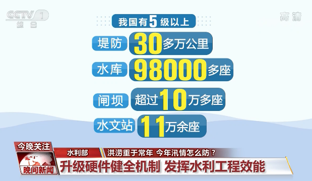 針對超標洪水,各地水利部門在6月底前編制完善江河和城市的超標洪水防御預(yù)案,將水庫大壩安全責任落實到人。目前,我國有5級以上堤防30多萬公里,水庫98000多座,還有超過10萬多座閘壩、11萬余座水文站。