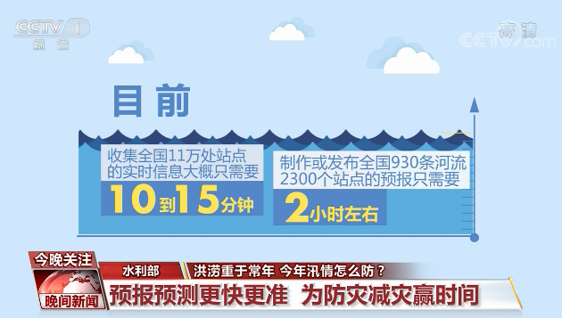 隨著更多新技術(shù)應(yīng)用,洪水的預(yù)報期從原來的一天延長到三天。1998年,水利部門收集全國3300個站點的信息需要2個小時,作出不到100個站點的預(yù)報需要4個小時。而目前,收集全國11萬處站點的實時信息,大概只需要10到15分鐘的時間,制作或發(fā)布全國930條河流2300個站點的預(yù)報,只需要2小時左右。