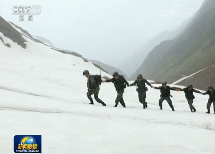 高寒缺氧加上深深的積雪,官兵們的體力消耗巨大,大家手牽手向上攀登,終于抵達巡邏的終點,展開國旗,宣示主權(quán)。