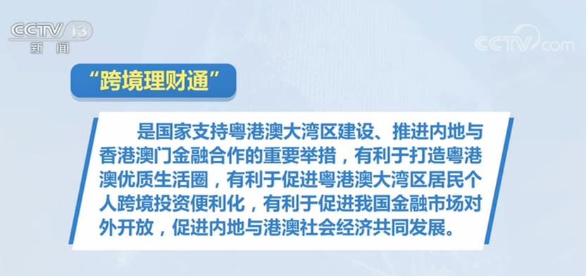央視網(wǎng)消息:為了促進(jìn)粵港澳大灣區(qū)居民個(gè)人跨境投資便利化,中國人民銀行、香港金融管理局、澳門金融管理局發(fā)布公告,決定在粵港澳大灣區(qū)開展“跨境理財(cái)通”業(yè)務(wù)試點(diǎn)。