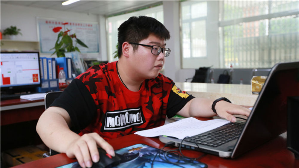 蔡瑞在安徽省金寨縣桃?guī)X鄉(xiāng)高灣村村部工作(6月18日攝)。 新華社發(fā)(胡銳 攝)