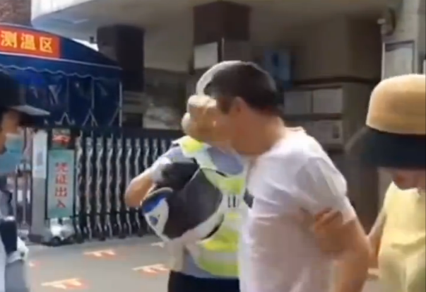 湖北黃梅縣一考生被積水困在小區(qū)里