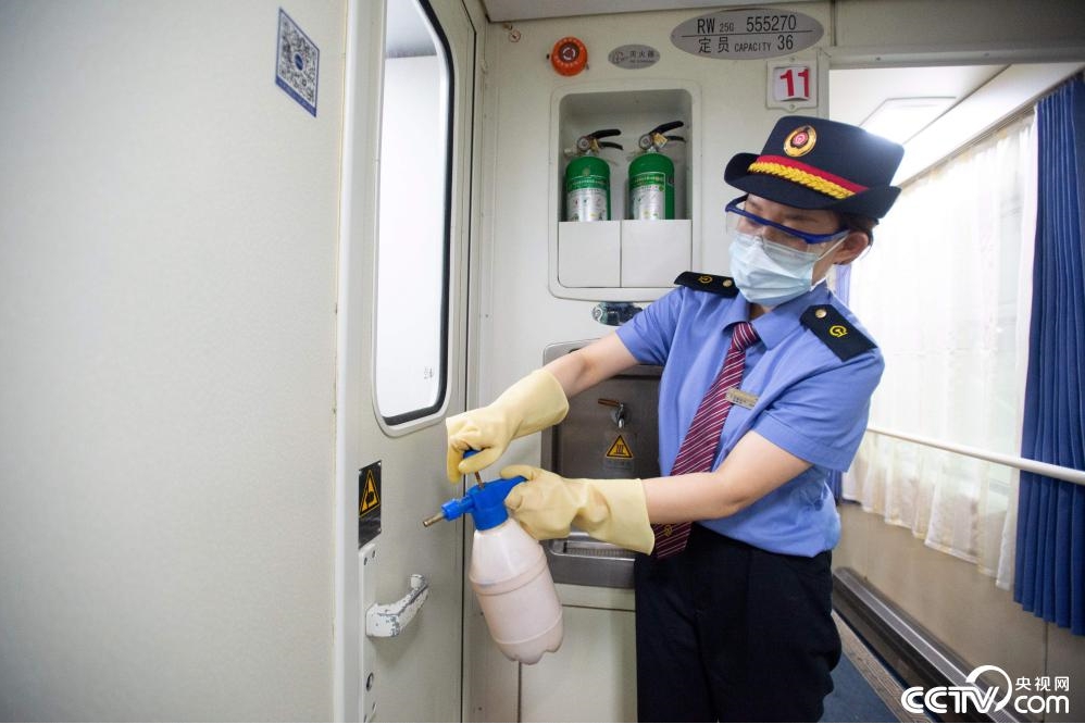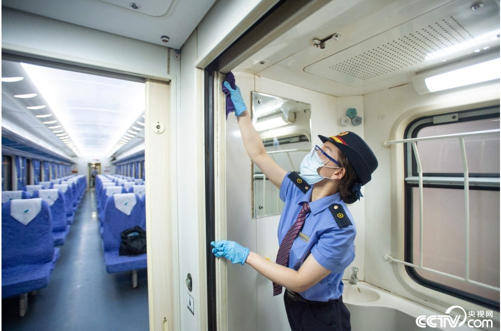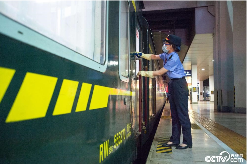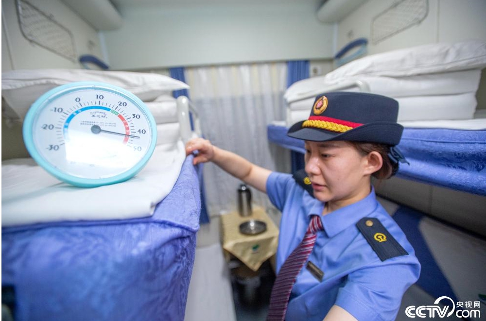 車輛駛?cè)虢K點站昆明,整個車輛將會斷電……列車車廂在庫內(nèi)整備將接受烈日的暴曬,鐵皮車內(nèi)的溫度會迅速升高,最高時將近50℃,車內(nèi)熱得像“桑拿房”。暖氣管、潔具柜、車門翻板等隱蔽部位,作為本節(jié)車廂的“守車人”李卿茹必須一一檢查。